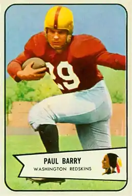 Paul F. Barry (August 7, 1926 – December 28, 2014) was an American football running back in the National Football League for the Los Angeles Rams, Washington Redskins, and Chicago Cardinals. He played college football at the University of Tulsa and was drafted in the thirteenth round of the 1949 NFL Draft.