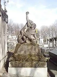 ![]() Boucherot's grave marker at Cimetière du Père-Lachaise, Paris depicting Prometheus' punishment for providing the power of fire to humanity | |