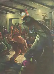 Coze created numerous paintings and drawings that were used as illustrations in Arizona Highways magazine; he often also wrote the article texts that were informed by his work as an anthropologist. His 19-page long feature article, Twenty-four Hours of Magic...The Zuñi Shalako, was illustrated with 13 paintings, 11 drawings, and four of his photographs. The illustrations and article describes the ten-foot high ceremonial masks that are worn by the Shalako dancers that represent the six directions of the world. The article tracks the 24 hour long ceremonial dance that takes place during the winter solstice each year, blessing the new homes at Zuni pueblo.[4]