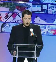 ![]() Griffiths presenting the 2008 Drama Medal Ceremony at the Urdd Gobaith Cymru Eisteddfod in May 2008. | |