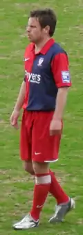 After starting the 2009–10 campaign just as poorly, he signed for Darlington on loan for three months on 26 November 2009, along with teammate Danny Hall.[18] He played just three games for the club. He joined Conference Premier side York City on loan until the end of the season in March 2010,[19] teaming up with his former Vale manager Martin Foyle. He made his first start in a 1–0 victory over Mansfield Town on 16 March,[20] and scored his first York goal with the opener in a 4–0 victory over Grays Athletic.[21] He finished the loan spell with nine appearances and one goal for York, helping them to a play-off position. Chesterfield announced that he would not be offered a new contract at the end of the season.[22]