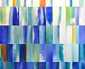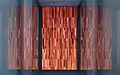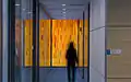 In 2009, Housberg completed a large installation at the California State Teachers’ Retirement System (CalSTRS) building designed by HOK San Francisco.[4] This particular work was fabricated in collaboration with Derix Glass Studio and Lamberts Glas.[5] The piece features tiles composed of handblown glass treated with vitreous enamels and laminated to mirror. The tiles are mounted to four walls in the lobby.