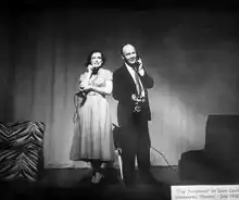 ![]() Paul Hume and Marie Handy performing Gian Carlo Menotti's comic opera The Telephone, or L'Amour à trois at Catholic University, Washington DC, 1952 |