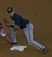 On July 14, he was traded to the Atlanta Braves for Todd Redmond, in order to replace the injured Andrelton Simmons.[11] On July 20, Janish hit the game-winning RBI in the Braves' 11–10 win over the Washington Nationals, a game in which the Braves had rallied from a 9–0 deficit.[12] In September, Janish suffered a left labrum injury, resulting in surgery. Janish signed a one-year contract to stay at the Braves without going through arbitration.[13]