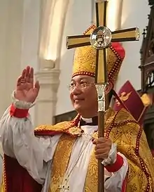 Kwong was first elected Bishop on 30 December 2005[8] and consecrated on 25 March 2006[9] at St John's Cathedral.[10] Following his consecration, Kwong became Coadjutor Bishop until his predecessor, Peter Kwong, left office on 31 December 2006.[9] He was later enthroned diocesan bishop on 15 January 2007.[11] After being elected by the General Synod on 3 February 2007,[6] Kwong was installed Archbishop on 26 September 2007[12] at St John's Cathedral (Hong Kong).[1] He was reelected Archbishop by the General Synod on 1 June 2013.[13] His advisor for theological and historical studies is Rev Dr Philip L. Wickeri, Professor of Church History at HKSKH Ming Hua Theological College.[14]