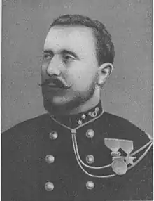 Paul-Amédée Le Marinel was the son of Amédée Le Marinel, a French soldier from Normandy who had joined the Belgian revolutionaries in 1830, and then served for eighteen years in the Belgian army. In 1858 Amédée emigrated to the U.S. and started a farm in Long Grove, Iowa where his two sons, Paul and George, were born. In 1868 the family returned to Belgium, and in 1876 Paul Le Marinel enrolled in the military school, graduating in 1878 with the rank of Sergeant. He served in the 13th Line Regiment for a year, then for a few years in the riflemen's regiment.[1] His brother Georges Le Marinel also joined the army and served in the Congo.[2]