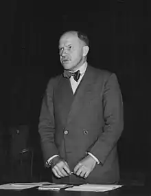 ![]() Paul Manship, Chairman of the New York City Council for Art Week, opens the meeting held Thursday evening, October 16, 1941, at the Architectural League | |