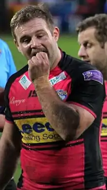 McShane was ever-present for Castleford in the 2016 season, appearing in every game.[8] He was an integral part of the 2017 squad that won the League Leaders' Shield and he played in the 2017 Super League Grand Final defeat by Leeds at Old Trafford.[16][17][18] He was named Castleford Tigers' 3rd Place 2017 Player of the Year.[19]