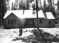 The guard station was originally built as a residence for the forest guard responsible for patrolling the campgrounds and forest around the Paulina Lake during the summer wildfire season.[2] From 1942 through the summer of 1959, John P. Robins was the forest guard assigned to the Paulina Lake Guard Station. Robins and his family lived at the guard station for seventeen summers. Robins' two sons later wrote a book about their experience at the guard station.[3][6]