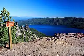 Paulina Peak is a summit in Deschutes County, Oregon, United States. Formed by the Newberry Volcano, it is part of Newberry National Volcanic Monument. At an elevation of 7,984 feet (2,434 m), it is the highest point on the volcano. The peak gives a panoramic view of the Newberry Caldera, the south and west flanks of the Newberry Volcano, the Cascades, the Fort Rock Basin, and central Oregon. The Cascade Range can be seen extending into California (Mount Shasta) and Washington (Mount Adams) from the peak on a clear sunny day.[1]