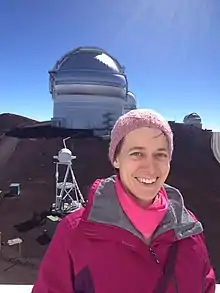 ![]() Pauline Barmby with Gemini-North Telescope | |