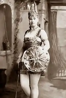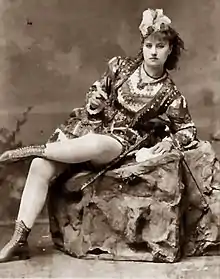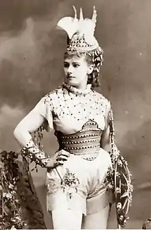 Pauline Markham (born Margaret Hall or Hale,[1][2] May 1847 – March 20, 1919)[3] was an Anglo-American dancer and contralto singer active on burlesque and vaudeville stages during the latter decades of the 19th century. She began by performing juvenile rôles in Manchester, made her debut on the London stage at 20 and a year later New York as a member of the British Blondes which introduced Victorian burlesque to America, where for a few years she would find phenomenal success before her career settled into a long steady decline.