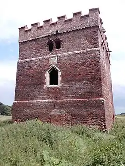 The tower is part of a rectangular, moated enclosure near the village of Paull, dating from the beginning of the 15th century.[2] The tower is three storeys high, each floor having a single chamber, the whole protected by a portcullis entrance.[2] There has been debate as to the purpose of the site - in part the fortification resembles the more northern pele towers, although alternatively the tower may have been built to give luxury accommodation overlooking the River Humber which runs nearby, similar to some properties built near King's Lynn.[2] It is a unique building for the period and region.[3]