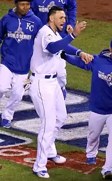 After the 2014 season, Orlando was added to the Royals 40-man roster. He made the Royals opening day roster in 2015 and made his major league debut on April 9, becoming the third Brazilian-born player in MLB history.[5][10] His first major league hit, a triple off Chicago White Sox pitcher John Danks, was also the first MLB hit for a born-and-raised Brazilian player.[10] Three days later, Orlando became the first player in MLB history to record three triples as his first three base hits.[11] On April 20, Orlando hit his fifth triple in his first seven games, establishing a new major league record for "the fewest games to hit five triples to open a career".[12]