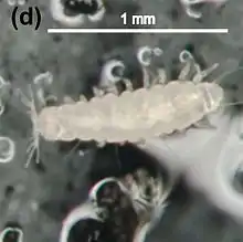 Pauropodidae is a family of pauropods. It contains over 20 genera and 650 species, as well as the only known fossil pauropod, Eopauropus.[1][2] Like most adult pauropods in the order Tetramerocerata,[3] most adults in this family have 9 pairs of legs, but adults in one genus, Cauvetauropus, have only 8 pairs of legs, and female adults in another genus, Decapauropus, have either 9 or 10 pairs of legs.[1] The first pauropod discovered with more than 9 pairs of legs was the species D. cuenoti, first described with 10 pairs in 1931.[4]