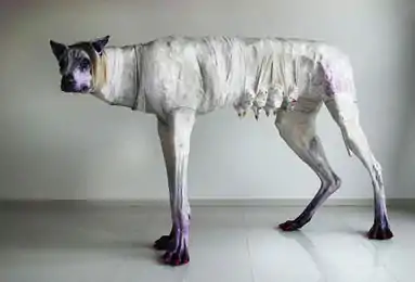 Look at Me (new Capitoline Wolf) is a 2011 art installation by Paweł Wocial. The installation is 210 centimetres (6 ft 11 in) tall and made of acrylic, polyester, fabric, jewelry, hair, plastic bottles and rubber teats. The form of the work refers to the Capitoline Wolf sculpture.