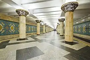 Paxtakor is a station of the Tashkent Metro on Chilonzor Line. The station column type with underground and ground-based lobby. The station was opened on 6 November 1977 as part of the inaugural section of Tashkent Metro, between October inkilobi and Sabir Rakhimov.[1]