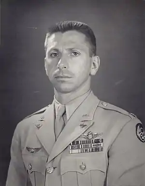 On July 26, 1943 he departed for duty in the India Burma Theater of Operations, where he served as chief of training and flying safety for the entire theater, and pilot to General Stratemeyer, the commanding general and chief of Operations Section (Eastern Air Command). He also supervised the air transfer of the Army Air Forces Headquarters from India to China.[5]