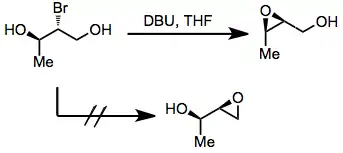 Halo diols may be used as precursors to 2,3-epoxy alcohols prior to rearrangement. Issues of site selectivity may arise if the two hydroxyl groups flanking the halide are not equivalent. In general, the formation of internal, substituted epoxides is more rapid than the formation of terminal epoxides.[6] This idea can be used to predict the course of migrations of in situ-generated epoxides.