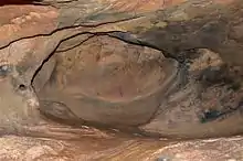 In general, there are two types of engravings, showing linear illustrations of bowls and cups, appear inside seven of the shelters. Only four of the shelters contain this one type of bowl and cup engravings while other categories of engravings appear alongside the paintings in other shelters. Bowl and cup engravings have also been discovered outside the shelters, on horizontal surface areas.