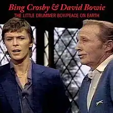 "Peace on Earth/Little Drummer Boy" is a Christmas song performed by English singer-songwriter David Bowie and American singer Bing Crosby. Recorded on 11 September 1977 at ATV Elstree Studios near London for Crosby's television special Bing Crosby's Merrie Olde Christmas, the song features Crosby singing 1941 standard "The Little Drummer Boy" while Bowie sings the counterpoint tune "Peace on Earth", written by the special's musical supervisors Ian Fraser and Larry Grossman, and scriptwriter Alan Kohan, specifically for the collaboration. The duet was one of Crosby's final recordings before his death in October 1977.