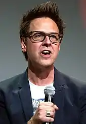 Gunn took eight weeks to write the first season, during a break between his work on The Suicide Squad and Marvel Studios' Guardians of the Galaxy Vol. 3 (2023).[31][38] He mostly wrote it in order, with the first two sequences he came up with on the first day of writing being the opening hospital scene and the dance number that is the opening title sequence.[4] Peacemaker extends the world that Gunn built for The Suicide Squad,[3] taking place after the film's post-credit scene which reveals that Peacemaker survived an apparently fatal gunshot wound from earlier in the film.[21] Gunn said the series was an opportunity to explore current world issues through the title character,[3] and to expand on his relationship with his father that is hinted at in the film.[21] He said the story of the first season was about Peacemaker coming to terms with the difference between his ideals and who he actually is,[4] with the character realizing that his identity is based on his childhood trauma and his treatment by his father. Gunn was not sure initially if the character would choose to fight or join the villains at the end of the season, but realized while making it that the series lent itself to being a redemption story. He did not want the villains, the Butterflies, to have a goal that was "thoroughly evil" and instead decided that they wanted to save humanity, despite being "mind-controlling aliens", from its "anti-science" mindset and populist leaders. Gunn said the "anti-science" line was more of a reference to climate change deniers than anti-vaxxers since debates about the COVID-19 vaccine were only just beginning when the season was being made.[28] The scenes in which Peacemaker and Vigilante have an "elaborate target practice" where they shoot and blow-up things in the woods was inspired by Gunn doing similar things with his friends as a child.[18] Gunn added a post-credits scene to the end of each episode as a way to reward fans who watched the full credits every time,[39] with each scene featuring unused footage from the episode. He compared the idea of having a joke after the credits to the end scenes of Rick and Morty.[40]