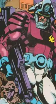 ![]() Christopher Smith as Peacemaker, from Who's Who in the DC Universe #5 (December 1990). Art by Grant Miehm and Tom McCraw. | |