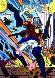 Peacemaker is the name of a series of fictional characters originally owned by Charlton Comics and later acquired by DC Comics. The original Peacemaker first appeared in Fightin' 5 #40 (November 1966) and was created by writer Joe Gill and artist Pat Boyette.[1]