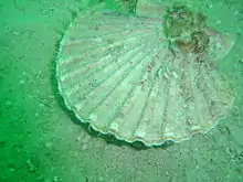 | Scallop Pecten sulcicostatus at Windmill Beach, Simon's Town, in False Bay | |