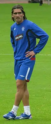 On 15 August 2008, Mendes completed a £3 million transfer to Rangers, signing a three-year contract.[23] He made his debut one day later, starting and winning the man of the match award in the 2–0 Scottish Premier League win over Hearts.[24] He scored his first goal for the club in the first Old Firm match of the season on 31 August 2008. Mendes scored the fourth goal of the match (and Rangers' third) when he received the ball from a Steven Davis corner and drilled it from 25 yards out into the Celtic goal. He was named SPL Player of the Month for August after a string of impressive performances.[25] He scored the second goal of the game in Rangers' title winning game against Dundee United in May 2009 but missed the 2009 Scottish Cup Final due to injury. He won the BBC Sportsound Player of the Year in 2008–09 for accumulating the most man-of-the-match performances throughout the season.[26] The following season, Mendes made eight appearances but was injured in November during a UEFA Champions League match against Unirea Urziceni, which was his final appearance.
