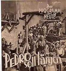 Pedro Will Hang (German: Pedro soll hängen) is a 1941 German adventure film directed by Veit Harlan and starring Gustav Knuth, Heinrich George and Maria Landrock.[3]