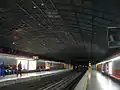 The platform level features a vaulted drop ceiling of stained glass. A second work of art is entitled La Ciudad (The City), which consists of four enameled steel murals placed on the walls of the four platform stairways. Both artworks were unveiled on January 13, 1999.[2]