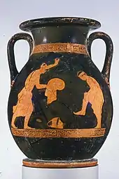 - "Two-handled jar (pelike) with actors preparing for a performance". Museum of Fine Arts, Boston. Retrieved 2016-05-01.