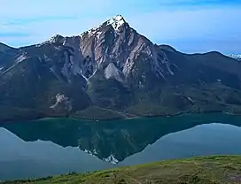 Pelly Peak, is a 2,048-metre (6,719-foot) mountain summit in the Russel Range of the Omineca Mountains in northern British Columbia, Canada. The mountain is situated west of the head of Finlay Reach of Williston Lake, and a remote 67 km (42 mi) south of Fort Ware in the Cassiar Land District.[3] It rises 1,250 m (4,100 ft) above the south shore of Pelly Lake. Its nearest higher peak is Barrier Peak, 5.0 km (3.1 mi) to the east. Precipitation runoff from the mountain drains into Pelly Creek, a tributary of the Ingenika River. Sir John Pelly (1777–1852) served as Governor of Hudson's Bay Company for three decades, and his name is attached to many geographic features in Canada, including but not limited to Pelly River, Pelly Mountains, Pelly Island, Pelly Bay, Mount Pelly, and Fort Pelly. The peak's name was officially adopted June 4, 1953, by the Geographical Names Board of Canada.[2] Based on the Köppen climate classification, Pelly Peak is located in a subarctic climate zone with cold, snowy winters, and mild summers.[4] Temperatures can drop below −20 °C with wind chill factors below −30 °C.