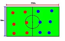 Traditionally the game is played around a block of houses or along four streets,[1] about 6─8 metres wide and 150─200 metres long.[3][7] The game has since been adapted to be played in parks.[1] The surfaces are very diverse and they have included snow, such as played by Latin students at Cornell University.
