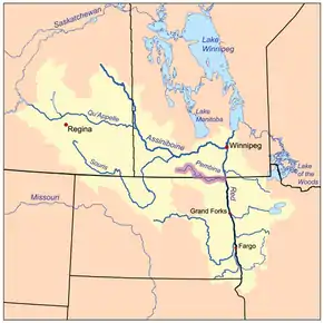 ![]() The Red River drainage basin, with the Pembina River highlighted | |