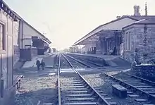 Originally, the station had two platforms. Both remain but only the southern one is in use (the track serving the other has now been removed). Part of the main building has been converted into The Station Inn, a real ale pub.[2] Originally carrying munitions, the freight branch ran past the station across local streets down to the actual dockside until 1969. Subsequently, albeit partially, the track has been lifted.