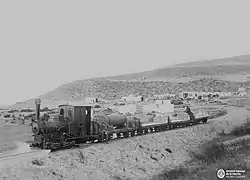 Engineer Mr. Belcridi was hired to a study and project of the railway line.[2] During the works, a big camp was installed to host workers and their families while works were carried out.[3] tracks were placed at first, then continuing with the buildings. A hotel, the headquarters, the fuel depot, a workshop and a warehouse to store tracks were built, apart from the post office and the houses for locomotive drivers and other workers.[2]