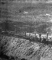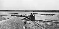 All the company's assets were acquired by entrepreneur Alejandro Ferro, although the lack of documents or titles that proved his rights over the line made the railway was closed in 1920.[2] The Government of Chubut expropriated the railway line area in 1958.[4] A report by United States Department of Commerce revealed that the railway was deficient since 1916 although financial problems had begun in 1904. The report also said that the harvesting of salt had ceased before Ferro acquired the company. The inhabitants of Puerto Pirámides decreased until the 1970s when tourism industry rejuvenated the city.[7][8]