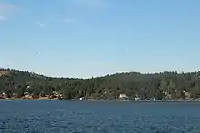 Pender Island (Saanich: st̕ey̕əs)[2] is one of the Southern Gulf Islands located in the Gulf of Georgia, British Columbia, Canada. Pender Island is approximately 34 km2 (13 sq mi) in area and is home to about 2,250 permanent residents, as well as a large seasonal population. Like most of the rest of the Southern Gulf Islands, Pender Island enjoys a sub-Mediterranean climate and features open farmland, rolling forested hills, several lakes and small mountains, as well as many coves and beaches.