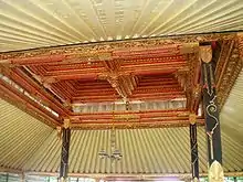 A pendhapa or pandhapa (Javanese: ꦥꦼꦟ꧀ꦝꦥ or ꦥꦟ꧀ꦝꦥ, Indonesian spelling: pendapa, nonstandard spelling: pendopo) is a fundamental element of Javanese architecture unique in the southern central part of Java;[1] a large pavilion-like structure built on columns. Either square or rectangular in plan, it is open on all sides and provides shelter from the sun and rain, but allows breeze and indirect light. The word pendhapa is cognate to the Sanskrit word mandapa ("hall").
