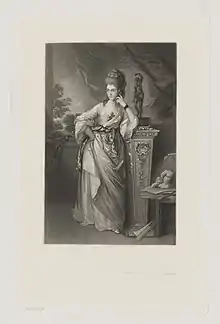 When they relocated to Cobham Park after their marriage they continued to entertain an international circle of friends, one of whom was Count Vittorio Amadeo Alfieri, an Italian poet and dramatist, with whom she began an affair.[5] The discovery of her infidelity by her husband in 1771 led to a duel Alfieri and Ligonier in Hyde Park, followed by a criminal conversation trial which made public the salacious testimony of servants, and extracts from the couple's passionate love letters.[6] A fictionalised version of the relationship appeared titled Lord Lelius and the Fair Emelia, or, The Generous Husband, and Alfieri would later include a sensational account of his liaison with Lady Ligonier in his memoirs.[4][7] Ligonier would eventually divorce her via the expensive and protracted process of a private parliamentary bill of divorce.[8] However, due to rumours of previous relationships between Penelope and members of her household staff, Count Alfieri refused to marry her and salvage her reputation.[5]