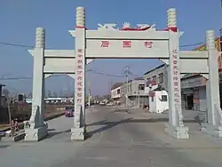 Péngjí Village, Chàhémén Village, Hòuwéi Village, Sānyìzhuāng Village, Luánmiào Village, Xiǎomèng Village, Wángzhuāng Village, Xiǎoliúzhuāng Village, Dàmèng Village, West Shǐzhuāng Village, East Shǐzhuāng Village, East Guōzhuāng Village, Féngzhuāng Village, Péizhài Village, Yuánlóu Village, West Guōzhuāng Village, South Chéngzi Village, Houdài Village, Qiándài Village, Dàijiā Village, Mǎdài Village, Lǚmiào Village, Hémùzhuāng Village, Lǚlóu Village, Liúwángzhuāng Village, Dà-Gāozhuāng Village, Xiǎo-Gāozhuāng Village, Hòutíng Village, Lónggù Village, hòuhǎi Village, Qiánhǎi Village, Yuánhǎi Village, An Village, Shàng-Liúzé Village, Chén-Liúzé Village, Mǎ-Liúzé Village, Sūn-Liúzé Village, Wěizihé Village, Liǔyíng Village, East Liáng Village, Chángzhuāng Village, Wángquān Village, Cáomiào Village, Dōnglǐlóu Village, Chéng Village, Zhàolóu Village, Lǐhǎi Village, Xiǎoniú Village, Lǔtún Village, Dà-Niú Village, North Zhāngquān Village, Chénquān Village, Xiezhuāng Village.[2][3]
