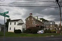 Penn's Park General Store Complex, also known as the Gaines Property, is a historic commercial complex located at Penn's Park, Wrightstown Township, Bucks County, Pennsylvania. It is south of the Penns Park Historic District. The complex consists of three primary buildings: a farmhouse, store building, and frame bank barn, along with six outbuildings. The farmhouse was built in 1810, and is a 2 1/2-story, six bay, fieldstone rectangular building in the Georgian style. The store building was built in 1836, and is a three-story, three bay by three bay, fieldstone building. The outbuildings consist of a storage shed, wagon building, chicken house, livestock barn, wood shed, and outhouse. The store housed a post office until 1971.[2]