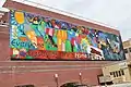 Mural reading "Everyone deserves to go home" on side of Healthcare for the Homeless building