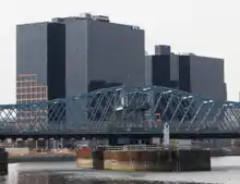 The Penn Plaza East complex takes its name for its location near Penn Station in Newark, New Jersey. Fronting Raymond Boulevard on the banks of the Passaic River, the two office buildings were constructed during a period in the late 1980s and early 1990s when they and numerous postmodern skyscrapers were built near the station and Gateway Center. While others went up between the station and traditional Downtown Newark, Penn Plaza East is on the Ironbound, or east, side of the major transportation hub.[5] As of 2010, the buildings are occupied by the corporate headquarters of New Jersey Transit, JOC Group, and Horizon Blue Cross Blue Shield of New Jersey, which owns their building.[6][7]