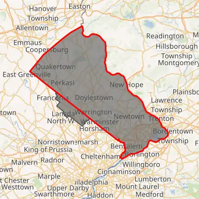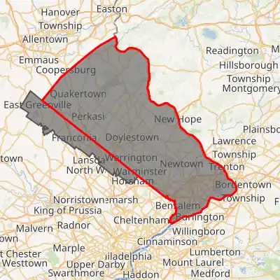 Interactive map of district boundaries, with Bucks County highlighted in red | |||