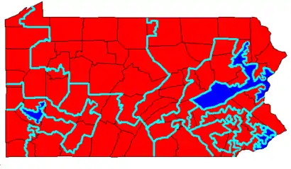 On January 22, 2018, the Pennsylvania Supreme Court ruled in League of Women Voters of Pennsylvania v. the Commonwealth of Pennsylvania that the congressional districts were an unlawful partisan gerrymander in violation of the Pennsylvania Constitution.[1][2] The General Assembly and governor failed to reach an agreement for a revised district map. Therefore, on February 19, 2018, the Pennsylvania Supreme Court released a new congressional map.[3] That map is estimated to have a partisan balance of 10 Republican-leaning and 8 Democratic-leaning seats.[4]