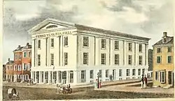 Pennsylvania Hall, "one of the most commodious and splendid buildings in the city,"[2] was an abolitionist venue in Philadelphia, Pennsylvania, built in 1837–38. It was a "Temple of Free Discussion", where antislavery, women's rights, and other reform lecturers could be heard.[3] Four days after it opened it was destroyed by arson, the work of an anti-abolitionist mob. Except for the burning of the White House and the Capitol during the War of 1812, it was the worst case of arson in American history up to that date.