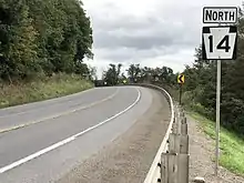 Pennsylvania Route 14 (PA 14) is a Pennsylvania highway that runs for 52 miles (84 km). It runs from U.S. Route 15 (US 15) in Trout Run, Pennsylvania to the New York-Pennsylvania border at Fassett, Pennsylvania, co-signed with US 6 for a short distance in Troy. The highway continues in New York as New York State Route 14 (NY 14).